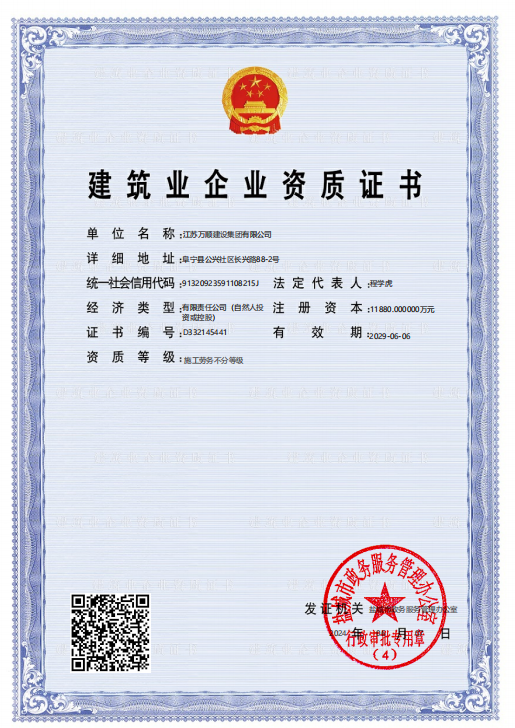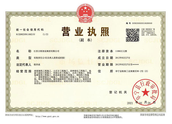 江蘇萬順建設集團于2012年2月經鹽城市阜寧縣工商行政管理局批準設立,目前已形成建筑施工總承包、建材銷售等綜合性、多元化企業,也是一家擁有現代經營管理模式、追求可持續(xù)發(fā)展的企業。